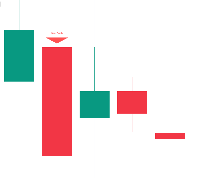 Question 5: A Bear Sash is a white candle followed by black candle that opens within white real body, and closes under white candle's open. (Note on this chart white candle would be the same as green candle, and black candle would be same as red candle)